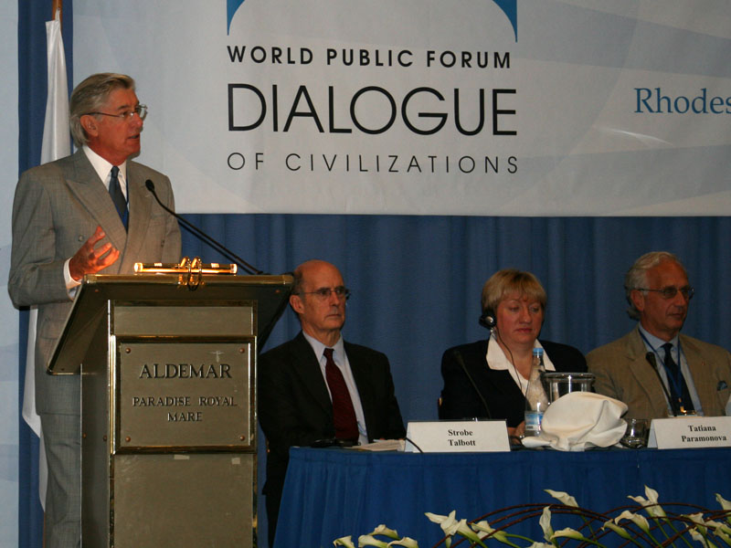 Вот и завершила свою работу VII ежегодная сессия Мирового общественного форума «Диалог цивилизаций», состоявшаяся на греческом острове Родос в период 8-12 октября 2009 года. Чтобы «переварить» и даже лишь для самого себя подытожить увиденное и услышанное на секциях и круглых столах этой сессии Форума требуется, конечно же, ни день и не два. И тем не менее, даже первое, беглое впечатление-резюме от этой сессии, из многих стран мира сведшей под крышу Форума огромное множество признанных специалистов/экспертов по самым различным сферам социально-экономической и политической жизни, науки, религии и культуры, самое благоприятное. Не боясь ошибиться, можно утверждать, что VII ежегодная сессия Форума в целом соответствовала высоким стандартам качества, замышленным его «отцами-сооснователями», и, скорее всего, она будет признана очередной важной вехой развития альтернативной модели организации и функционирования глобального мира – модели диалога цивилизаций, находящейся на стадии своего становления и обретения своего места в умах и действиях людей, в первую очередь, политиков и общественных деятелей.