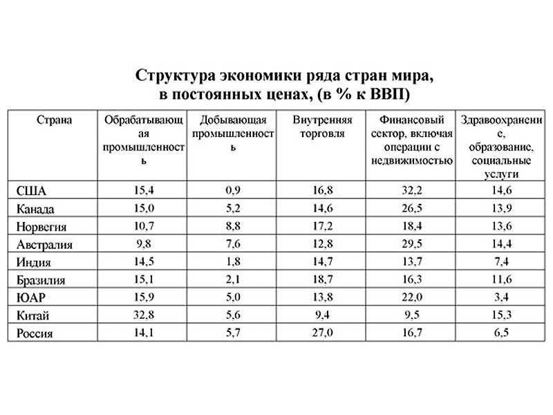 К сожалению, эта же структура экономики характеризуется низкой долей НЧП, прежде всего из-за низкого удельного веса науки, образования, здравоохранения и социальных услуг, что хорошо видно из следующих сопоставлений[15].