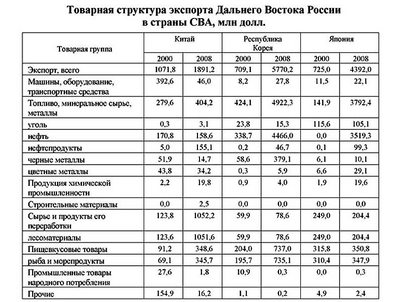 Структура экономики Дальнего Востока отражена и в структуре экспорта и импорта региона, что хорошо видно из следующих данных[16]