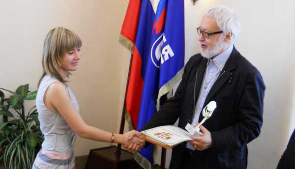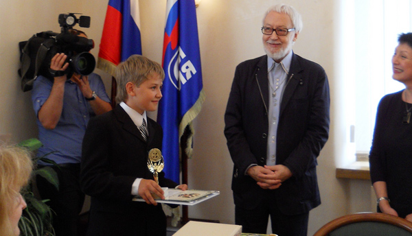 Награды юным талантам – победителям Конкурса вручали депутат Государственной Думы, член Общественного совета Фонда «Добрососедство» Валерий Богомолов и кинорежиссер Георгий Юнгвальд-Хилькевич, секретарь Оргкомитета конкурса художница Алла Максимова, ответственный секретарь ОКС при УФМС России по г. Москве Юрий Московский.