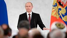 Владимир Путин выступил в Кремле перед депутатами Государственной Думы, членами Совета Федерации, руководителями регионов России и представителями гражданского общества.