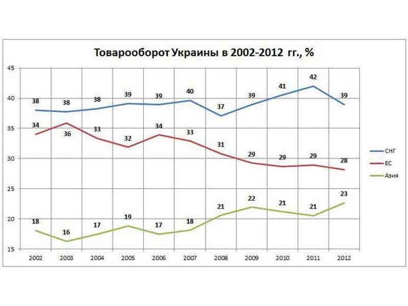 Если вплоть до середины «нулевых» годов сторонники европейского вектора внешней политики на каждой дискуссии указывали на стремительно выравнивающиеся доли СНГ и ЕС в украинском товарообороте, то сейчас «вдруг» эти цифры стали «неактуальными».