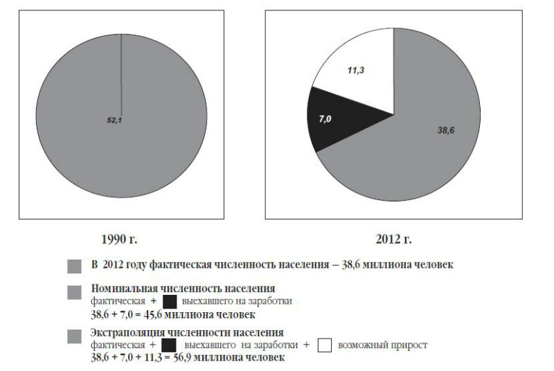 Номинальная численность населения Украины уменьшилась с 52 миллионов человек в 1990 году до 45,6 миллионова на конец 2012-го. Но еще 7 миллионов выехало из страны на заработки. Так что фактически на территории Украины осталось менее 39 миллионов человек. Между тем экстраполяционный анализ показывает, что сохранение прежних тенденций постепенного улучшения условий жизни, которое наше население ощущало на себе в 1970—1990 годах, привело бы и в последующий 20-летний период к сохранению среднегодового прироста в 219 тысяч человек. А значит, к концу 2012 года на территории Украины проживало бы почти 57 миллионов человек. Колоссальные потери несет наш народ — мы потеряли треть населения! Это и есть политика геноцида, намеренного геноцида, как его называет Ларуш.