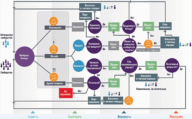 Схема работает в рамках замкнутого цикла «прослушивание аудитории — анализ — вовлечение».