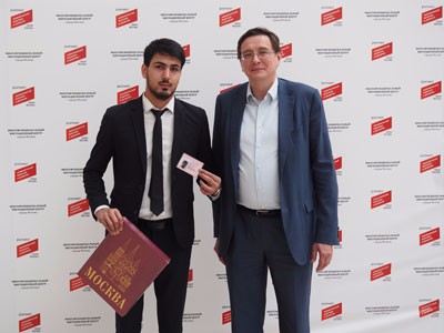 Генеральный директор Миграционного центра Николай Федосеев лично поздравил его и вручил ему памятную книгу о российской столице.